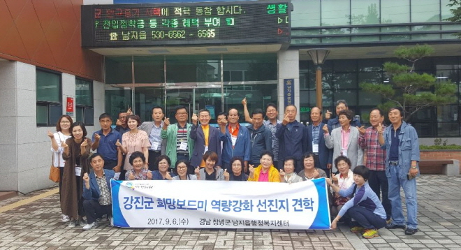 °Áø¿¡¼ Ãâ¹ßÇØ ³²ÁöÀ¾ÇàÁ¤º¹Áö¼¾ÅÍ¿¡ µµÂøÇÑ Èñ¸Áº¸µå¹Ì ÀÏÇàÀº ¸ÕÀú ¿ì¼ö»ç·Ê °øÀ¯ ¹× Á¤º¸±³È¯ÀÇ ½Ã°£À» °¡Á³´Ù. ƯÈ÷ 2016³â À¾¸éµ¿ º¹ÁöÇãºêÈ ¸ÂÃãÇü º¹Áö¼ºñ½º Á¦°øºÎ¹® ´ë»óÀ» ¹ÞÀº â³ç±º ³²ÁöÀ¾ÀÇ °æÇèÀ» ¹è¿ì°íÀÚ ÇöÀåÀº ±Ý¼¼ ¶ß°Ì°Ô ´Þ¾Æ¿Ã¶ú´Ù.