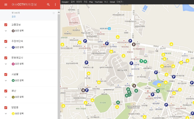 ¿©¼ö½Ã°¡ ÀÚü °³¹ßÇÑ ÀÌ ¼ºñ½º´Â CCTV ¼³Ä¡ À§Ä¡, °üÁ¦¼¾ÅÍ ¿î¿µÇöȲ, ¿¬¶ôó µîÀÇ Á¤º¸¸¦ ´ã°í ÀÖ´Ù. ƯÈ÷ CCTV Á¾·ù¸¦ ¹æ¹ü¿ë.±³ÅëÁ¤º¸.ÁÖÁ¤Â÷´Ü¼Ó.¹®ÈÀç°¨½Ã.Àç³ µîÀ¸·Î ±¸ºÐÇϰí À§Ä¡¸¦ Áöµµ»ó¿¡ ³ªÅ¸³» ´©±¸³ª ½±°Ô ÆÄ¾ÇÇÒ ¼ö ÀÖµµ·Ï Çß´Ù. Á¢¼ÓÀº PC³ª ½º¸¶Æ®ÆùÀ¸·Î Æ÷ÅлçÀÌÆ® ³×À̹ö¿¡ Á¢¼ÓÇØ ¡®¿©¼ö½Ã CCTV@¡¯¸¦ °Ë»öÇϰųª Á÷Á¢ ÁÖ¼Ò(yeosucctv.modoo.at)¸¦ ÀÔ·ÂÇÏ¸é µÈ´Ù.