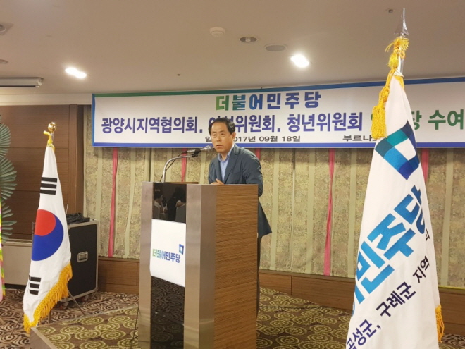 ÀÌ ÀÚ¸®¿¡ Âü¼®ÇÑ ¼ÛÀçõ ±¤¾ç½ÃÀÇÀåÀº ¡°ÀÓ¸íµÇ½Å ºÐµé²² ¿µ±¤°ú ÃàÇÏÀÇ Àλ縦 µå¸°´Ù. ¹®ÀçÀÎ Á¤ºÎ¿Í ´õºÒ¾î¹ÎÁÖ´ç°ú ÇÔ²² ¿ì¸® ½Ã¹ÎµéÀ» ÇູÇÏ°Ô ¸¸µå´Â °Ô ¿ì¸®¿¡°Ô ÁÖ¾îÁø ÀÓ¹«´Ù. ±×·¯ÇÑ ±âº»À» °¡Áö°í ¸ÃÀº ¿ªÇÒÀ» ÀßÇØÁÖ½Ã±æ ºÎŹµå¸°´Ù¡±°í Àλ縻À» ÀüÇß´Ù.
