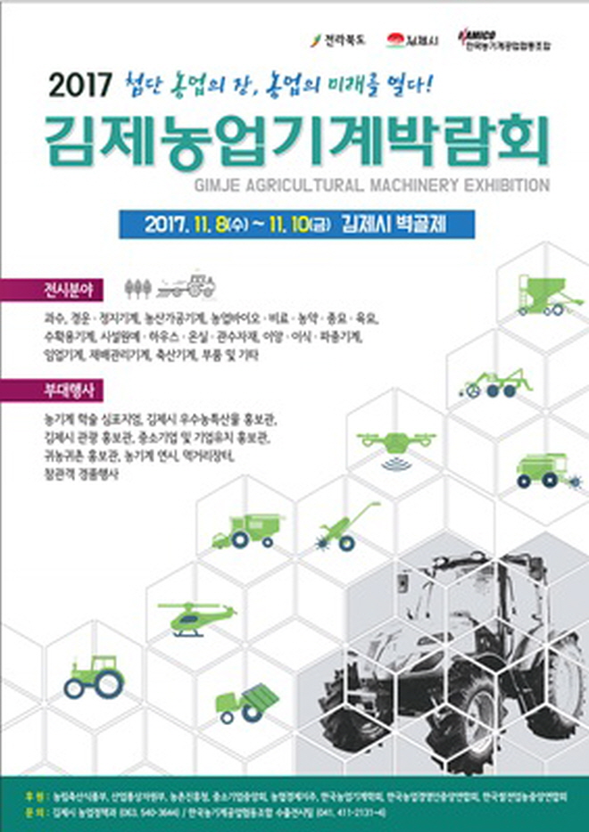 Àü¶óºÏµµ, ±èÁ¦½Ã°¡ ÁÖÃÖÇϰí Çѱ¹³ó±â°è°ø¾÷Çùµ¿Á¶ÇÕÀÌ ÁÖ°üÇϴ¡¸2017 ±èÁ¦ ³ó¾÷±â°è¹Ú¶÷ȸ¡¹´Â ÃÖ½ÅÀÇ ´Ù¾çÇÑ ³ó±â°è ¹× ³óÀÚÀ縦 Àü½ÃÇÔÀ¸·Î½á ³ó¾÷Àΰú »ý»êÀÚ °£ Á¤º¸±³·ù¸¦ ÅëÇÑ ³ó¾÷»ý»ê¼ºÀ» Á¦°íÇϰí Áö¿ªÆ¯»ê¹° È«º¸ ¹× Áö¿ª°ü±¤ µîÀ» º´ÇàÇÏ¿© Áö¿ª°æÁ¦ Ȱ¼ºÈ¿¡ À̹ÙÁöÇϰí ÀÖ´Ù. 2015³â ´ç½Ã °ü¶÷°´ 13¸¸¿©¸í°ú 1¸¸ 7õ¿©°ÇÀÇ »ó´ã, ±×¸®°í 14¾ï¿©¿øÀ̶ó´Â °è¾à ¼º°ú¸¦ °ÅµÎ¸ç ¹Ì·¡ ³ó±â°è »ê¾÷¿¡ ´ëÇÑ ¹ßÀü °¡´É¼ºÀ» ÇѲ¯ ³ô¿©Áá´Ù. ƯÈ÷ 2015³â¿¡ ÀÌ¾î ¿ÃÇØ·Î µÎ ¹øÂ°¸¦ ¸Â´Â À̹ø ¹Ú¶÷ȸ´Â ÀÌ °°Àº ¶ß°Å¿î È£ÀÀÀ» ¹Ý¿µÇÏ µí 2015³â º¸´Ù 12°³ ¾÷ü°¡ ´õ ½ÅûÇÏ¿© 48°³ ºÎ½º°¡ ´Ã¾î ³ 192°³ ¾÷ü (390°³ ±âÁ¾), ÃÑ 429°³ Àü½ÃºÎ½º°¡ ¸ðµÎ Á¶±â ¸¶°¨µÇ´Â µî ¸í½Ç»óºÎÇÑ Àü±¹ ÃÖ°íÀÇ ³ó¾÷±â°è¹Ú¶÷ȸ·Î °Åµì³ª°í ÀÖ´Ù.