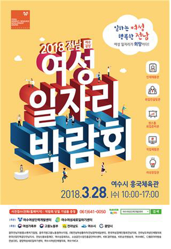 22ÀÏ ¿©¼ö½Ã¿¡ µû¸£¸é ¿À´Â 28ÀÏ ¿©¼ö ÈﱹüÀ°°ü¿¡¼ ¡®2018 Àü³² ¿©¼º ÀÏÀÚ¸® ¹Ú¶÷ȸ¡¯°¡ °³ÃֵȴÙ. À̹ø ¹Ú¶÷ȸ´Â ¿©¼ö¿©¼ºÀη°³¹ß¼¾ÅͰ¡ ÁÖ°üÇÏ°í ¿©¼º°¡Á·ºÎ, Àü¶ó³²µµ, ¿©¼ö½Ã°¡ ÈÄ¿øÇÑ´Ù.