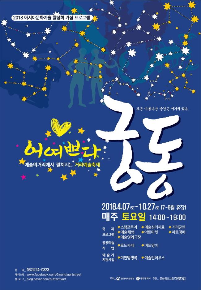 ¿ÃÇØ ÁÖÁ¦´Â ¡®¸ðµç ¾Æ¸§´Ù¿î ¼ø°£Àº ¿©±â¿¡ ÀÖ´Ù¡¯·Î ¿À´Â 10¿ù±îÁö ¸ÅÁÖ Åä¿äÀÏ ¿ÀÈÄ 2½ÃºÎÅÍ ¿ÀÈÄ 7½Ã±îÁö ¿¹¼úÀÇ °Å¸®¿¡¼ ¿¸°´Ù.°³¸· Çà»ç´Â ¿ÀÈÄ 2½Ã ¿øºÒ±³ ±¤ÁÖº»´ç¿¡¼ ŸÁ¾À» ½ÃÀÛÀ¸·Î ¸Ó¸®¿¡ ²ÉÀ» Àå½ÄÇÑ ¿¹¼ú°¡°¡ ÃãÀ» Ãß¸ç º½À» ±ú¿ì´Â Áö½Å¹«(ò¢ãêÙñ) ÆÛÆ÷¸Õ½º µîÀ¸·Î ²Ù¸çÁø´Ù.