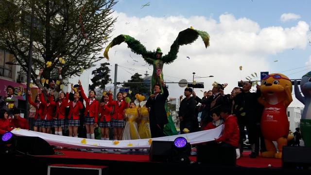¿ÀÈÄ 2½Ã30ºÐ, ±Ý³²·Î ÀüÀϺôµù ¾Õ¿¡¼ ½ÃÀÛµÈ °³¸·½ÄÀº 80¿© ¸íÀÇ ±¤ÁֽùεéÀÌ ÇÔ²² Âü¿©ÇÑ ¡®ÇÁ¸°Áö ´í½º¡¯ Ç÷¡½Ã¸÷À¸·Î ¹®À» ¿¾ú´Ù. µÚÀÌ¾î ¡®2018±¤ÁÖÇÁ¸°ÁöÆä½ºÆ¼¹ú¡¯ÀÇ ÁÖÁ¦ ¡®ºñ»ó¡¯À» ÆÛÆ÷¸Õ½º·Î Ç¥ÇöÇÑ ¼½Â¾Æ ÀÛ°¡°¡ ÇÑ ¸¶¸® »õÀÇ Çü»óÀ» ÇÏ°í ¹«´ë¿¡ ¿Ã¶ó ¡®Èñ¸ÁÀÇ ³¯°¹Áþ¡¯À» ¼±º¸ÀÌ¸ç ½Ã¹ÎµéÀÇ Âü¿©¿Í ȯȣ¸¦ À̲ø¾î ³Â´Ù.