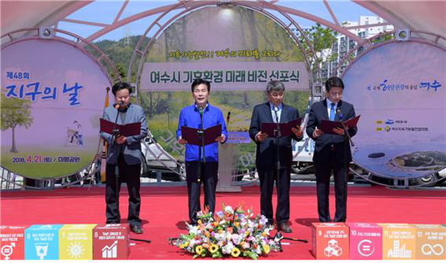 ¿©¼ö½Ã¿¡ µû¸£¸é Áö³ 21ÀÏ ¹ÌÆò°ø¿ø¿¡¼ Á¦11ȸ ±âÈĺ¸È£ÁÖ°£ ÇÙ½É Çà»çÀÎ Á¦48ÁÖ³â Áö±¸ÀÇ ³¯ ±â³ä ±âÈÄȯ°æ ¹Ì·¡ºñÀü ¼±Æ÷½ÄÀÌ ¿·È´Ù. ¿©¼ö½Ã¿Í ¿©¼öÁö¼Ó°¡´É¹ßÀüÇùÀÇȸ, ½Ã¹Î»çȸ´Üü, ¿©¼ö»ê´Ü°øÀåÀåÇùÀÇȸ µî ¹Î°ü»êÇÐÀº À̳¯ ȯ°æ¡¤»çȸ¡¤°æÁ¦°¡ Á¶È¸¦ ÀÌ·ç´Â ¿©¼ö ±¸ÇöÀ» ¼±Æ÷Çß´Ù.