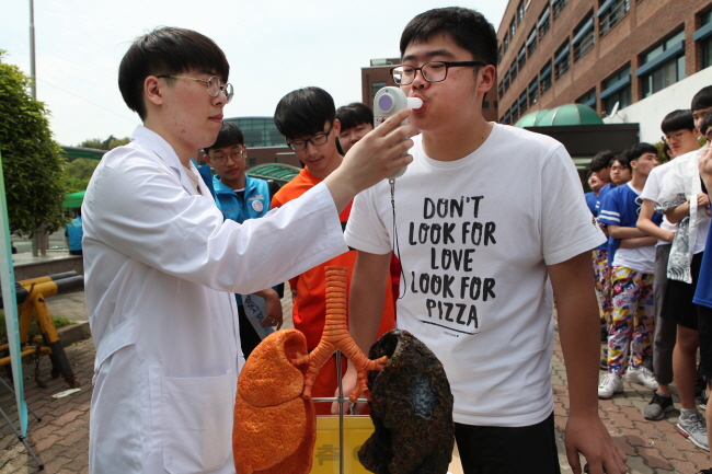 ¶ÇÇÑ, Áï¼®¿¡¼ ±Ý¿¬¡¤ÀýÁÖ °ü·Ã ÁNǥ¾î ¹× 2Çà½Ã Áþ±â°¡ ÁøÇàµÅ Àα⸦ ¸ð¾Ò´Ù. ÇлýµéÀº ¡°±Ý¿¬ÇÏ°í ¿¬¼ÓÀ¸·Î ¼úµµ ²÷ÀÚ¡±, ¡°Èí¿¬ ´õ ÀÌ»ó ¿¬±âÇÏÁö ¸¶¼¼¿ä, "±Ý¿¬À» ½ÃÀÛÇÏ¸é ¿¬±â°¡ »ç¶óÁ®¿ä", ¡°´ã¹èÇÇ¸é ¾ÖÀÎ ¾È »ý°Ü¿ä¡± µî ÅåÅå Æ¢´Â ¾ÆÀ̵ð¾î¸¦ »Ë³Â´Ù. ƯÈ÷ Çлý 22¸íÀ¸·Î ±¸¼ºµÈ û¼Ò³â °Ç°¼Æ÷ÅÍÁî°¡ ±Ý¿¬¡¤ÀýÁÖ¿¹¹æ ¾î±ú¶ì¿Í ÇÇÄÏÀ» µé°í °Ç° Ä·ÆäÀÎÀ» ÆîÄ¡¸ç Ä£±¸µé¿¡°Ô ¿Ã¹Ù¸¥ °Ç°Á¤º¸¸¦ Àü´ÞÇϴµ¥ ¾ÕÀå¼¹´Ù. À̳¯, Çà»ç¿¡ Âü¿©ÇÑ ±è¼ºÁØ ÇлýÀº ¡°Èí¿¬ÀÌ ³» °Ç°»Ó¸¸ ¾Æ´Ï¶ó °¡Á·°ú ÁÖº¯»ç¶÷µé¿¡°Ô ½É°¢ÇÑ ÇÇÇØ¸¦ ÁÙ ¼ö ÀÖ´Ù´Â °ÍÀ» ¾Ë°Ô µÆ´Ù¸é¼, ƯÈ÷ û¼Ò³â±â¿¡ ½ÃÀÛÇÑ Èí¿¬ÀÌ ½ÅüÀû ¼ºÀå¿¡ ¿µÇâÀ» ÁÙ ¼ö ÀÖ´Ù°í ÇÏ´Ï Ä£±¸µé°ú ÇÔ²² ÇÑ ±Ý¿¬¾à¼ÓÀ» ¹Ýµå½Ã ÁöŰ°Ú´Ù¡±°í ¸»Çß´Ù. ÇÑÆí, µ¿±¸ °ü°èÀÚ´Â ¡°Èí¿¬°ú À½Áִ û¼Ò³â±â¿¡ À߸øµÈ È£±â½ÉÀ¸·Î ½ÃÀÛÇÏ´Â °æ¿ì°¡ ¸¹Àºµ¥ À̹ø Çà»ç¸¦ ÅëÇØ û¼Ò³âµéÀÌ Èí¿¬°ú À½ÁÖÀÇ ÆóÇØ¸¦ ÃæºÐÈ÷ ÀνÄÇßÀ» °ÍÀ¸·Î »ý°¢ÇÑ´Ù¡±¸é¼ ¡°¾ÕÀ¸·Îµµ ÁÖ¹Îü°¨Çü ±Ý¿¬¡¤ÀýÁÖ Á¤Ã¥À» ÆîÃÄ °Ç°ÇÑ µ¿±¸¸¦ ¸¸µé¾î°¡°Ú´Ù¡±°í ¸»Çß´Ù.