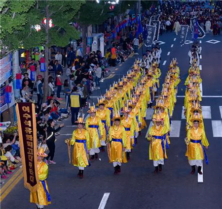 ÅëÁ¦¿µ±æ³îÀÌ´Â ÀÓÁø¿Ö¶õ ¶§ »ïµµ¼ö±ºÅëÁ¦¿µÀ̾ú´ø Àü¶óÁ¼ö¿µÀ» ¹«´ë·Î ½Ã¹Î°ú °ü±¤°´ µî 5000¿©¸íÀÌ Âü¿©ÇÏ´Â ÆÛ·¹À̵å´Ù. ±æ³îÀÌ Âü¿©ÀÚµéÀº À̳¯ ¼±³µ¿·ÎÅ͸®¿¡¼ Á¾Æ÷ÇØ¾ç°ø¿ø±îÁö 1.9§°¸¦ ÇàÁøÇϸç 52°³ ÀÛǰÀ» ¿¬ÃâÇÑ´Ù. ÁÖÁ¦´Â Á¶¼± ¼ö±ºÀÇ ÀDZâ, Á¼ö¿µÀÇ ÆíÁ¦, Á¼ö¿µÀÇ ÀüÀï Áغñ»óȲ, À̼ø½ÅÀ屺ÀÇ Ãæ°ú È¿ µîÀÌ´Ù.