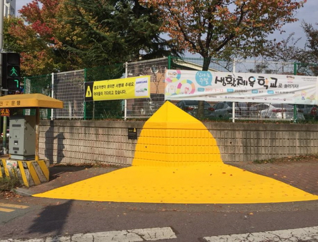¿»·ÎÄ«ÆêÀº Ⱦ´Üº¸µµ ´ë±â°ø°£(º®°ú ¹Ù´Ú)À» ³ë¶õ»öÀ¸·Î Ä¥ÇØ º¸ÇàÀڴ Ⱦ´Üº¸µµ ´ë±â¼±¿¡¼ ´ë±âÇϵµ·Ï À¯µµÇϰí, ¿îÀüÀÚ´Â º¸ÇàÀÚ¸¦ ½±°Ô ÀνÄÇÒ ¼ö ÀÖµµ·Ï µ½´Â º¸Çà¾ÈÀü ½Ã¼³ÀÌ´Ù.