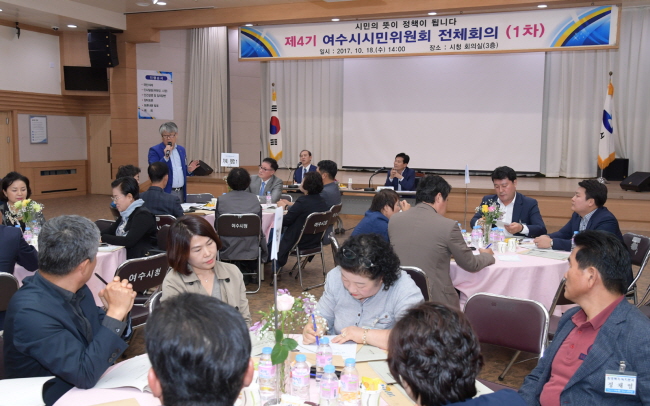 100ÀÎ ½Ã¹ÎÀ§¿øÈ¸´Â ¿©¼ö½ÃÀÇ ´ëÇ¥ ¼ÒÅë½ÃÃ¥À¸·Î ²ÅÈù´Ù. °¢°è°¢ÃþÀÇ ½Ã¹Îµé·Î À§¿øÈ¸¸¦ ±¸¼ºÇØ ½ÃÁ¤ ÁÖ¿ä Çö¾È¿¡ ´ëÇÑ ÀǰßÀ» µè´Â´Ù´Â ÃëÁö·Î 2014³â ù Ãâ¹üÇß´Ù. 5¿ù ÇöÀç´Â Á¦4±â À§¿øµéÀÌ È°µ¿Çϰí ÀÖ´Ù. ½Ã¹ÎÀ§¿øµéÀº 4±â±îÁö ÃÑ 121ȸÀÇ È¸ÀǸ¦ ¿¾î 180°ÇÀÇ ÁÖ¿ä ¾È°Ç¿¡ ½Ã¹Î ÀÔÀå¿¡¼ ÀǰßÀ» ³Â´Ù.