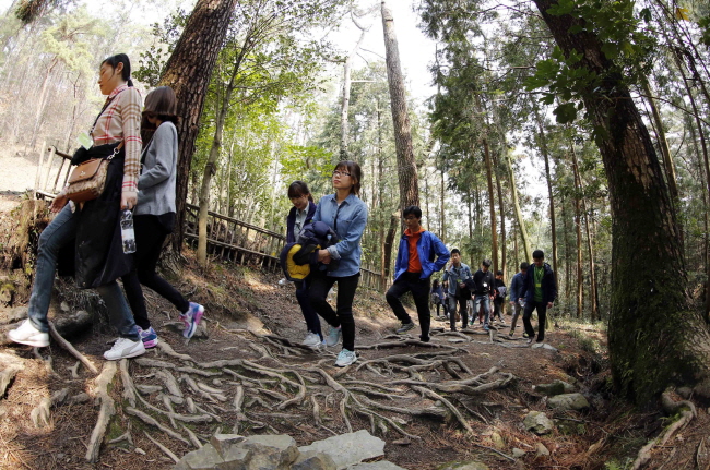 ÀÌ¾î ¹ß°ÉÀ½À» ÀçÃËÇÏ¸é »©¾î³ »ê¼¼¿Í °è°îÀ¸·Î ³²µµÀÇ ¼Ò±Ý°À̶ó ºÒ¸®´Â ¼®¹®°ø¿ø¿¡ µµÂøÇÑ´Ù. ¼®¹®°ø¿øÀº ¼®¹®(à´Ú¦)À̶ó´Â À̸§ ±×´ë·Î ±ä ¼¼¿ù°ú ºñ¹Ù¶÷ÀÌ Á¶°¢ÇÑ ±â¾Ï±«¼®µéÀÌ º´Ç³Ã³·³ ÆîÃÄÁ® ÀÖ´Ù. ƯÈ÷ ȯ°æÈѼÕÀ» ÃÖ¼ÒÈÇØ ¸¸´ö»ê°ú ¼®¹®»êÀ» ¿¬°áÇÑ »ç¶û+±¸¸§´Ù¸®(111m)´Â ³²µµ¸íǰ±æÀÇ ¹é¹Ì¸¦ ÀÚ¶ûÇÑ´Ù.
