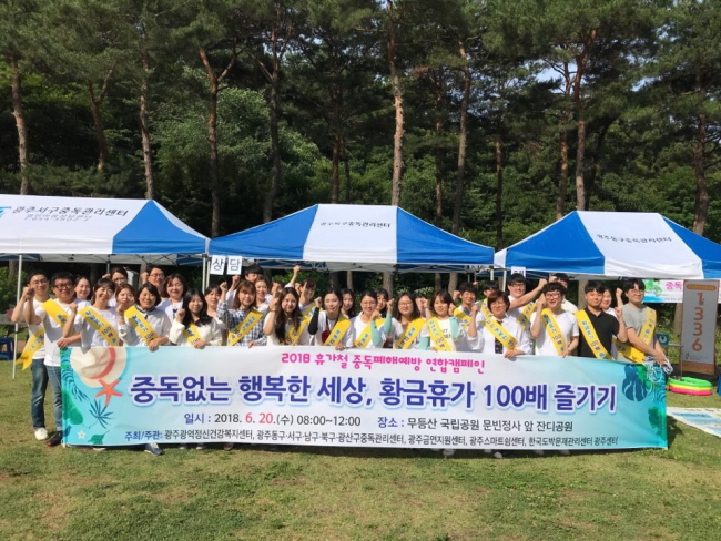 Ä·ÆäÀο¡´Â ±¤ÁÖ½Ã, º¸°Ç¼Ò, ±¤¿ªÁ¤½Åº¹Áö¼¾ÅÍ, Áßµ¶°ü¸®¼¾ÅÍ, ±Ý¿¬Áö¿ø¼¾ÅÍ, ½º¸¶Æ®½°¼¾ÅÍ, µµ¹Ú¹®Á¦°ü¸®¼¾ÅÍ µî °ü°èÀÚ 50¿© ¸íÀÌ Âü¿©ÇÑ °¡¿îµ¥ ¡ãÀ½ÁÖ°¡»óüÇè ¡ãÁßµ¶¡Û¡¿ÄûÁî ¡ãµµ¹ÚüÇè ¡ã½º¸¶Æ®Ã¼Çè ¡ã¾ËÄÚ¿Ã, ÀÎÅͳÝ, µµ¹Ú, ´ÏÄÚÆ¾, ¸¶¾à »ó´ã, È«º¸ µî ´Ù¾çÇÑ ÇÁ·Î±×·¥ÀÌ ÁøÇàµÆ´Ù.