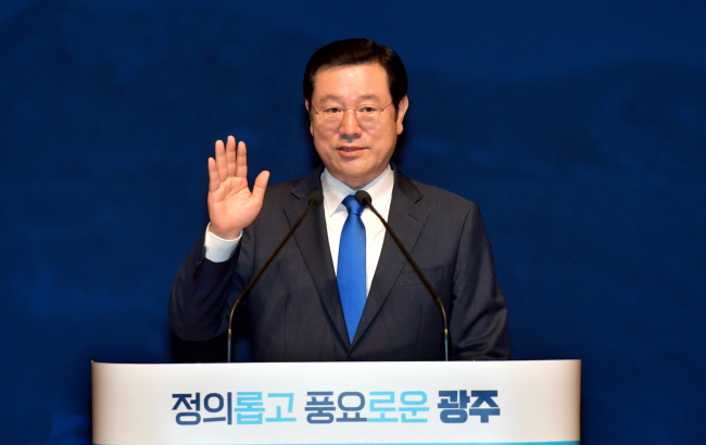 ¡°±¤ÁÖÀÇ ¿ª»ç¿Í ½Ã¹ÎÀÇ »îÀ» ¹Ù²Ù´Â ÀÏÀÚ¸® °æÁ¦½ÃÀåÀÌ µÇ°Ú´Ù¡±°í ¾à¼ÓÇϰí, ¹Î¼±7±â ±¤ÁÖºñÀü°ú 7´ë Á¤Ã¥ ¹æÇâ, 3´ë ½ÃÁ¤¹æÄ§À» Á¦½ÃÇß´Ù.±×´Â ¡°Á¤ÀǷοòÀÇ ¿ª»ç·Î ¼±ÇÏ°í °¡½¿ µû¶æÇÑ »ç¶÷µéÀÌ °ÇØÁö´Â ±¤ÁÖ, ¿øÄ¢°ú Á¤µµ¸¦ ÁöŰ´Â »ç¶÷µéÀÌ ¿ì´ë¹Þ´Â ±¤ÁÖ, º¯ÈÇϰí Çõ½ÅÇÏ´Â »ç¶÷µéÀÌ ¼º°øÇÏ´Â ±¤ÁÖ¸¦ ¸¸µé°í ½Í´Ù¡±°í ¸»Çß´Ù. ¶Ç ½ÃÁ¤ÀÇ Áß½ÉÀ» ¡®ÁÁÀº ÀÏÀÚ¸® âÃ⡯°ú ¡®±¤ÁÖ´Ù¿òÀÇ º¹¿ø¡¯¿¡ µÎ°í ¡®Á¤ÀÇ·Î¿î ¹ø¿µ, ÇÔ²² ³ª´©´Â dz¿ä¡¯¸¦ ½ÇÇöÇÏ°Ú´Ù°í ¾à¼ÓÇß´Ù.