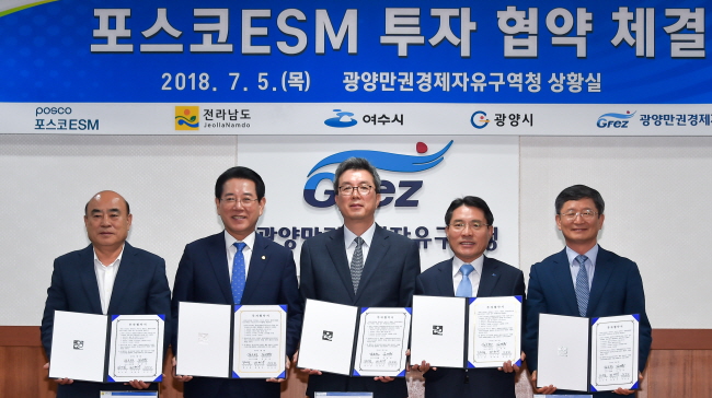 ¿©¼ö½Ã¿¡ µû¸£¸é 5ÀÏ ¿ÀÀü ±¤¾ç°æÁ¦ÀÚÀ¯±¸¿ªÃ»¿¡¼ ¿©¼ö½Ã¿Í Àü¶ó³²µµ, ±¤¾ç½Ã, ±¤¾ç¸¸±Ç°æÁ¦ÀÚÀ¯±¸¿ªÃ», ¢ßÆ÷½ºÄÚ ESMÀÌ À²ÃÌ»ê´Ü¿¡ 5700¾ï ¿øÀ» ÅõÀÚÇÏ´Â Çù¾àÀ» ü°áÇß´Ù.