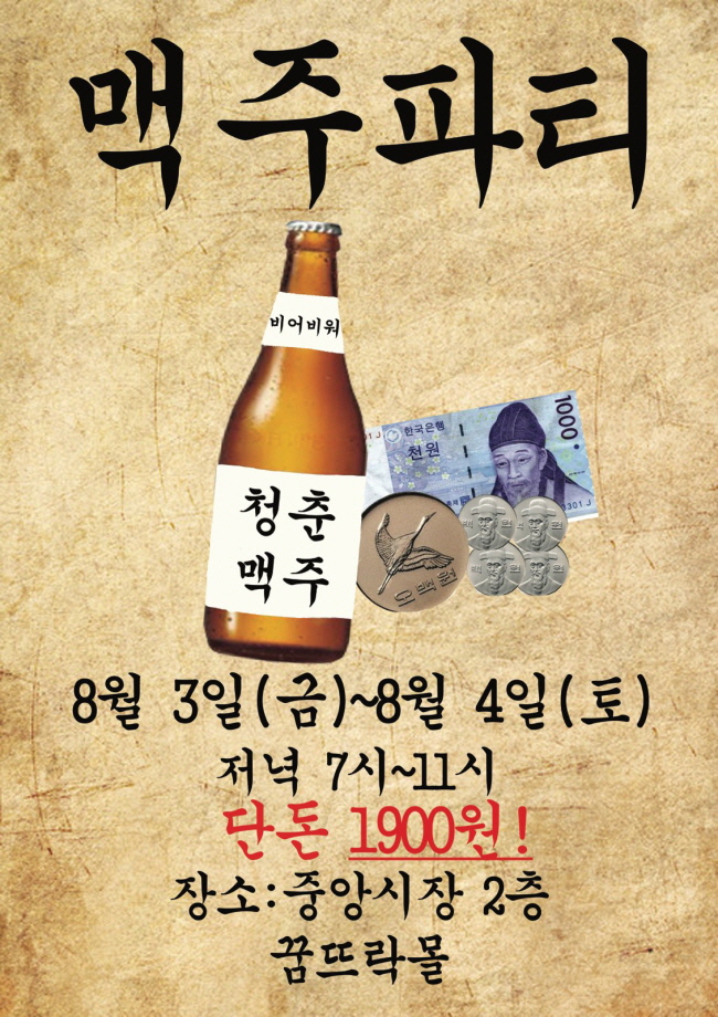 [¿©¼ö/½Ã»çÁ¾ÇսŹ®]Àå¹Î±Ô ±âÀÚ = ¿©¼ö½Ã´Â Áö³­´Þ 12ÀÏ °³ÀåÇÑ ¿©¼ö Áß¾Ó½ÃÀå û³â¸ô ¡®²Þ¶ß¶ô¸ô¡¯¿¡¼­ ½Ã¿øÇÑ ¸ÆÁÖÆÄÆ¼°¡ ¿­¸°´Ù. Æø¿°À» Àá½Ã ÀØ°Ô ÇØÁÙ À̹ø ¸ÆÁÖÆÄÆ¼´Â 3ÀϺÎÅÍ 4ÀϱîÁö Áß¾Ó½ÃÀå 2Ãþ ¡®²Þ¶ß¶ô¸ô¡¯¿¡¼­ ÁøÇàµÈ´Ù. ½Ã°£Àº ¿ÀÈÄ 7½ÃºÎÅÍ 11½Ã±îÁö´Ù. ¸ÆÁÖÆÄÆ¼ÀÎ ¸¸Å­ ÇöÀå¿¡¼­´Â ½Ã¿øÇÑ ¸ÆÁÖ¸¦ Àú·ÅÇÑ °¡°Ý¿¡ ¸¶½Ç ¼ö ÀÖ´Ù. ´Ù¾çÇÑ ³ª¶óÀÇ ¸ÆÁÖµµ ÁغñµÈ´Ù. ¸ÆÁÖ »¡¸® ¸¶½Ã±â ´ëȸ, ¡®¸Æ¹É¸®¿¡(¸ÆÁÖ ºê·£µå ¸ÂÃß±â)¡¯ ´ëȸ, ¹ö½ºÅ· °ø¿¬, Ãß¾ïÀÇ ¿À¶ô½Ç °ÔÀÓ µîÀº Çà»çÀÇ ÈïÀ» ´õÇÒ °ÍÀ¸·Î ±â´ëµÈ´Ù.Çà»ç Àå¼ÒÀÎ ¡®²Þ¶ß¶ô¸ô¡¯Àº û³âµéÀÌ °øÅÍÀÇ Àǹ̸¦ °¡Áø ¡®¶ß¶ô¡¯¿¡¼­ ¡®²Þ¡¯À» ¸¸µé¾î ³ª°£´Ù´Â Àǹ̴Ù. ¿©¼ö½Ã°¡ ħü¸¦ °Þ°í ÀÖ´Â Áß¾Ó½ÃÀåÀ» Ȱ¼ºÈ­Çϰí û³ââ¾÷À» µ½±â À§ÇÑ µ¹ÆÄ±¸·Î û³â¸ô ¿î¿µÀ» ±¸»óÇß´Ù. Áö³­ÇØ Áß¼Òº¥Ã³±â¾÷ºÎÀÇ Ã»³â¸ô Á¶¼º»ç¾÷ °ø¸ð¿¡ ¼±Á¤µÅ ±¹ºñ 7¾ï5000¸¸ ¿øÀ» Áö¿ø¹Þ°Ô µÆ°í, ½Ãºñ¿Í Àںδ㠵îÀ» ´õÇØ 15¾ï ¿øÀ» ÅõÀÔÇß´Ù. Á¡Æ÷ ¸®¸ðµ¨¸µ°ú û³â»óÀÎ ±³À° µîÀ» °ÅÃÄ Áö³­´Þ 12ÀÏ ¹®À» ¿¬ ¡®²Þ¶ß¶ô¸ô¡¯Àº ¸Ô°Å¸®¿Í üÇè °ø¹æ µî 29°³ Á¡Æ÷·Î ä¿öÁ³´Ù. ȸÀǽǰú ½°ÅÍ µî °øµ¿°ø°£µµ ¸¶·ÃµÆ´Ù. û³â»óÀεéÀº Á¡Æ÷ ¿î¿µ°ú ÇÔ²² ¹ÂÁöÄà °ø¿¬ µîÀ» Çϸç û³â¹®È­¸¦ ¸¸µé¾î°¥ °èȹÀÌ´Ù. ÇÑÆí, ¿©¼ö½Ã °ü°èÀÚ´Â ¡°²Þ¶ß¶ô¸ôÀÌ Ã»³â»óÀεéÀÌ °¡Áø ÅåÅå Æ¢´Â ¾ÆÀ̵ð¾îÀÇ ¹ß»ê Àå¼Ò°¡ µÇ°í ÀÖ´Ù¡±¸ç ¡°¸¹Àº ½Ã¹ÎµéÀÌ °¡Á·, Ä£±¸¿Í ÇÔ²² ¸ÆÁÖÆÄÆ¼¿¡ Âü¿©ÇØ Ãß¾ïÀ» ¸¸µå½Ã±æ ¹Ù¶õ´Ù¡±°í ¸»Çß´Ù.
