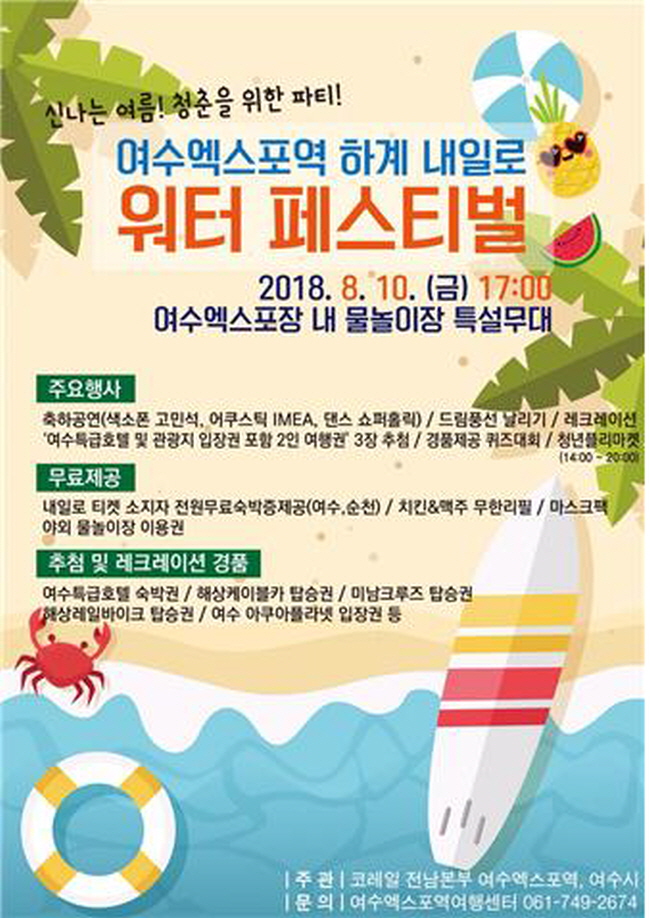 ¿©¼ö´Â ³»ÀÏ·¯µéÀÌ °¡Àå ¼±È£ÇÏ´Â ¿©ÇàÁö Áß ÇѰ÷À¸·Î, ½Ã´Â ´Ù¾çÇÑ À̺¥Æ®¸¦ ÁغñÇØ ³»ÀÏ·¯µéÀ» ¸ÂÀÌÇϰí ÀÖ´Ù. ¾Õ¼ Áö³ÇØ 2¿ù¿¡´Â ¿©¼ö¿¢½ºÆ÷¿ª È«º¸°ü¿¡¼ ³»ÀÏ·Î ´í½º Æä½ºÆ¼¹úÀ» °³ÃÖÇß°í, 8¿ù ÇöÀç´Â ÇÏ°è ³»ÀÏ·¯ ¿©¼ö¿©Çà SNS¡¤ºí·Î±× Èıâ À̺¥Æ®¸¦ ÁøÇà ÁßÀÌ´Ù.