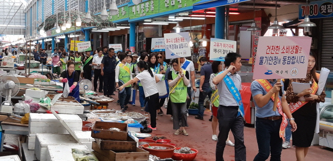 ¿©¼ö½Ã¿¡ µû¸£¸é Áö³ 18ÀÏ ½Ã °ø¹«¿ø°ú ¼ÒºñÀÚ´Üü ȸ¿ø µî 50¿© ¸íÀÌ Áø³²½ÃÀå°ú ½ÖºÀ½ÃÀå µî ÀüÅë½ÃÀå »óÀε鿡°Ô °ÇÀüÇÑ »ó°Å·¡Áú¼ È®¸³¿¡ ÇùÁ¶ÇØ ÁÙ °ÍÀ» ¿äûÇß´Ù.