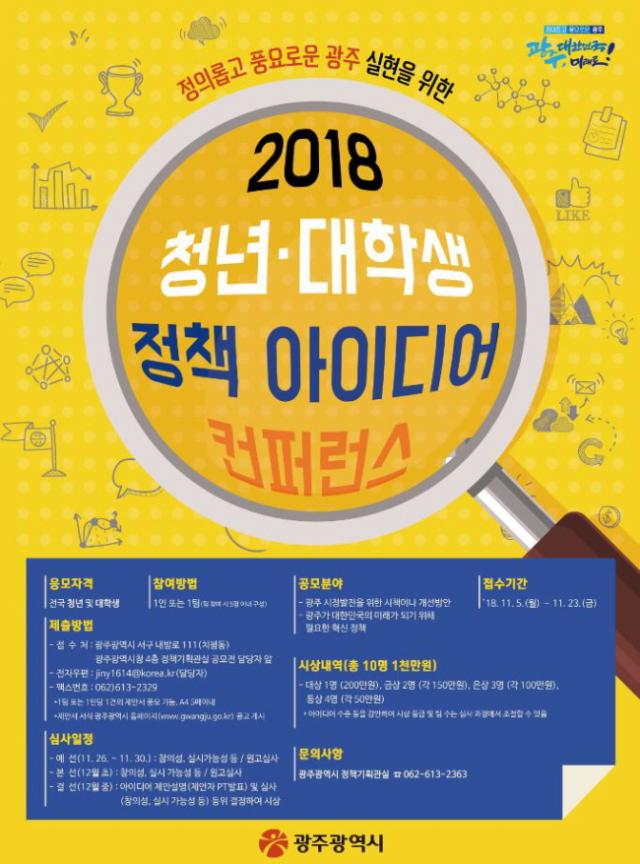 ¸Å³â ±¹¹Î°úÀÇ ¼ÒÅë ⱸ·Î Á¤Ã¥ ¾ÆÀ̵ð¾î °ø¸ð¸¦ ½ÃÇàÇϰí ÀÖ´Â ±¤Áֽô ¹Î¼±7±â ù Á¤Ã¥ ¾ÆÀ̵ð¾î °ø¸ðÀü ´ë»óÀ» Âü½ÅÇϰí âÀÇÀûÀΠû³âÃþÀ¸·Î Á¤Çß´Ù. °ø¸ð ºÐ¾ß´Â ¡ã½ÃÁ¤¹ßÀüÀ» À§ÇÑ ½ÃÃ¥ ¡ã½ÃÁ¤¹ßÀüÀ» À§ÇÑ °³¼±¹æ¾È µî 2°³´Ù.