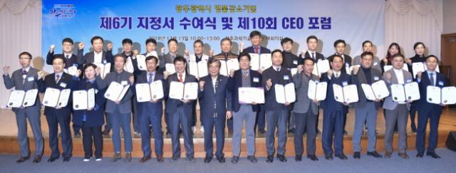 ±¤Áֽô À̳¯ Á¦6±â ¸íǰ°¼Ò±â¾÷ ÁöÁ¤¼ ¼ö¿©½Ä¿¡ À̾î ÀÚÀÇ´©¸® °æ¿µ¿¬±¸¿ø ¼Áø¿µ ¹Ú»ç¸¦ ÃÊ´ëÇØ ¡®Àι®°íÀü¿¡¼ ÆîÃ帴 ±â¾÷°¡ Á¤½Å°ú Çõ½Å¡¯À̶ó´Â ÁÖÁ¦·Î ¡®Á¦10ȸ ¸íǰ°¼Ò±â¾÷ CEOÆ÷·³¡¯À» °³ÃÖÇß´Ù.