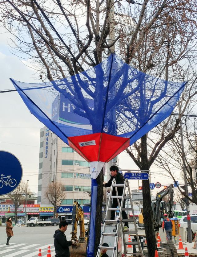 µ¿±¸´Â °íÁú¹Î¿øÀÎ ÀºÇ೪¹« ¿¸Å ¾ÇÃëÇØ°áÀ» À§ÇØ ÃÖ±Ù °ü³» °è¸²¿À°Å¸® µî ÀºÇ೪¹« 4ÁÖ¿¡ ´ëÇü±×¹°¸ÁÀ» ¼³Ä¡Çß´Ù. ³ª¹«±âµÕ¿¡ ±×¹°¸ÁÀ» ´Þ¾Æ ÀºÇ࿸Ű¡ ±×¹°¸Á ¾ÈÀ¸·Î ¶³¾îÁö´Â ¹æ½ÄÀÌ´Ù.