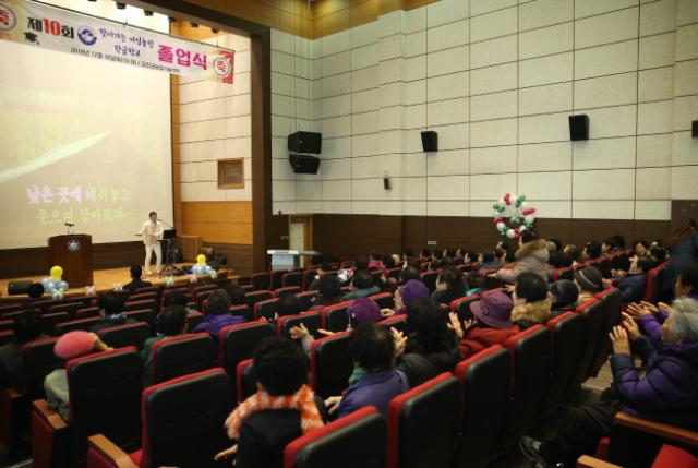 À̳¯ Á¹¾÷½Ä¿¡¼´Â ÇѱÛÇб³ ¿î¿µÀ» À§ÇØ Èû¾´ 3°³ ¸¶À»¿¡ ±º¼ö ǥâÀ» ¼ö¿©ÇÏ¿´°í ÀüüÇлý 265¸í Áß 57¸íÀÇ ¾î¸£½ÅµéÀÌ Á¹¾÷ÀåÀ» ¹Þ¾ÒÀ¸¸ç, °³±Ù»ó, °ø·Î»ó, ³ë·Â»ó µîÀ» ¼ö»óÇß´Ù.