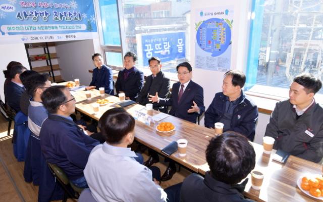 Áö³ 27ÀÏ ¿©¼ö ²Þ¶ß¶ô¸ô¿¡¼ ÁøÇàµÈ »ç¶û¹æ Á´ãȸ¿¡´Â »ê´Ü »çȸ°øÇå Ã¥ÀÓÀÚ 10¸íÀÌ Âü¿©ÇØ Áö¿ª°ú ±â¾÷ÀÇ »ó»ý¹ßÀü ¹æ¾ÈÀ» ³íÀÇÇß´Ù. »ç¶û¹æ Á´ãȸ´Â ¹Î¼± 7±â ¿©¼ö½ÃÀÇ ÇÙ½É ¼ÒÅë½ÃÃ¥ÀÌ´Ù. ½ÃÀåÀÌ Á÷Á¢ ¹Î»ýÇöÀåÀ» ã¾Æ°¡ Çü½Ä°ú ÀýÂ÷ ¾øÀÌ ´ëÈÇÏ´Â °ÍÀ¸·Î ½ÃÀÛ ÀüºÎÅÍ Å« ÁÖ¸ñÀ» ¹Þ¾Ò´Ù.
