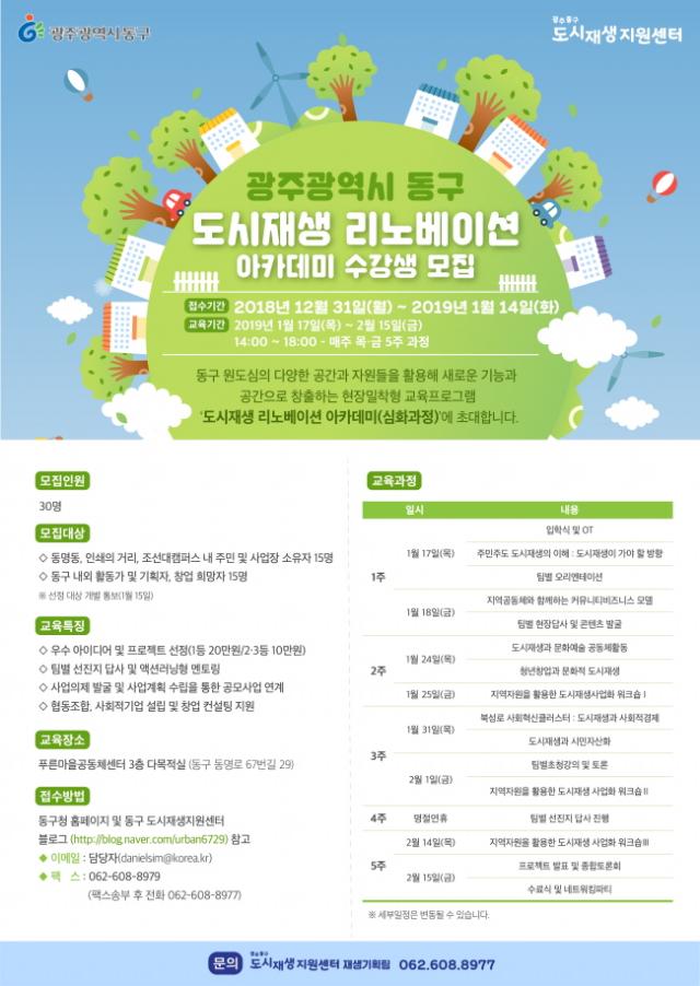 ¿À´Â 17ÀϺÎÅÍ 2¿ù 15ÀϱîÁö 5ÁÖ°£(¸ÅÁÖ ¸ñ¡¤±Ý, ¿ÀÈÄ 2½Ã~6½Ã) Ǫ¸¥¸¶À»°øµ¿Ã¼¼¾ÅÍ¿¡¼ ÁøÇàµÇ´Â À̹ø ±³À°°úÁ¤Àº µ¿¸íµ¿ µµ½ÃÀç»ý´ºµô ¼±Á¤Áö¿ªÀ» Æ÷ÇÔÇØ ÀμâÀÇ °Å¸®, Á¶¼±´ë Ä·ÆÛ½ºÅ¸¿î µî µµ½ÃÀç»ý ´ºµô»ç¾÷ ´ë»óÁö ÁֹεéÀÇ °ü½É°ú Âü¿©¸¦ À̲ø¾î³»°í ´Ù¾çÇÑ Ã»³â â¾÷ÀÚ¡¤±âȹÀÚµéÀÇ ÀÎÀû ³×Æ®¿öÅ© ±¸ÃàÀ» À§ÇØ ¸¶·ÃµÆ´Ù.