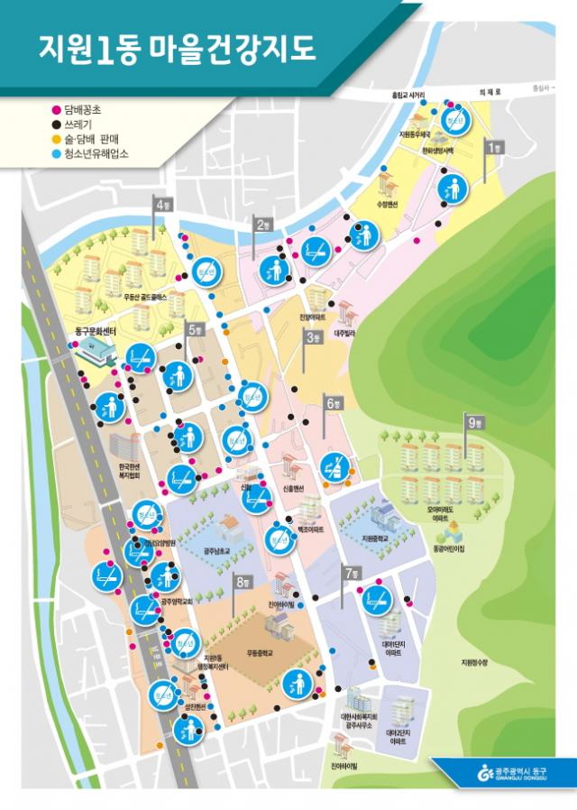 Áö¿ª»çȸ °Ç°Á¶»ç °á°ú Èí¿¬À², °È±â ½ÇõÀ² µî °Ç°Áö¼ö°¡ ³·Àº Áö¿ªÀÎ Áö¿ø1µ¿À» ´ë»óÀ¸·Î Á¦ÀÛµÈ À̹ø °Ç°Áöµµ´Â Áö³ÇØ 10¿ùºÎÅÍ ¹«µîÁßÇб³ Çлý, Áö¿ªÁÖ¹Î, ÇàÁ¤º¹Áö¼¾ÅÍ µî ¹Î.°ü.ÇÐÀÌ ÈûÀ» ¸ð¾Æ ¸¶À» °÷°÷À» Á÷Á¢ Ž¹æ¡¤Á¶»çÇÑ °á°ú¸¦ ¹ÙÅÁÀ¸·Î Á¦À۵ƴÙ. ƯÈ÷ Áý¡¤Çб³¡¤»ó°¡¡¤°ñ¸ñ±æ µî ¸¶À» °÷°÷À» ´ë»óÀ¸·Î °Ç°À§Çù¿ä¼Ò¿Í °Ç°¿¡ µµ¿òÀ» ÁÖ´Â ¿ä¼Ò¸¦ ÆÄ¾Ç¡¤ºÐ·ùÇØ ¡ã°£Á¢Èí¿¬ ÆóÇØ Áö¿ª ¡ã¾²·¹±âÅõ±â ´Ù¹ßÁö¿ª ¡ã¼ú¡¤´ã¹è ÆÇ¸Å¾÷¼Ò ¡ãû¼Ò³â À¯Çؾ÷¼Ò ¡ãÀÇ·á±â°ü, »êÃ¥·Î µî ¸¶À» Àüü Á¤º¸¸¦ ÇÑ´«¿¡ º¼ ¼ö ÀÖµµ·Ï Çß´Ù.