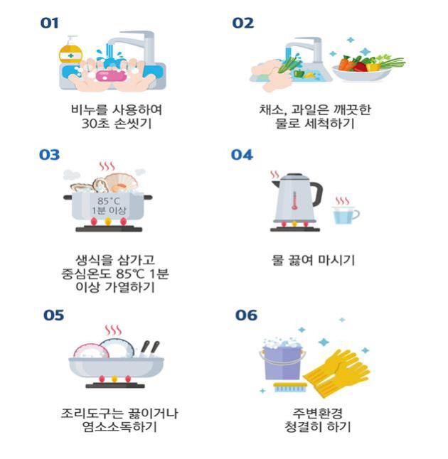 -¼³»ç Áõ¼¼°¡ ÀÖ´Â Á¶¸®Á¾»çÀÚ´Â Á¶¸®¿¡ Âü¿©Çϰųª À½½Ä¹°À» Ãë±Þ ÇØ¼´Â ¾È µÇ¸ç, ¸ðµç Á¶¸®Á¾»çÀÚ´Â È帣´Â ¹°¿¡ 30ÃÊ ÀÌ»ó ºñ´©·Î ¼Õ ¾Ä±â¸¦ »ýȰÈÇÏ¿© °³ÀÎÀ§»ý°ü¸®¸¦ öÀúÈ÷ ÇØ¾ß ÇÕ´Ï´Ù.