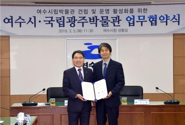 ¿©¼ö½Ã´Â 5ÀÏ ¿ÀÀü ½Ãû »óȲ½Ç¿¡¼ ±Ç¿ÀºÀ ¿©¼ö½ÃÀå°ú ±è½ÂÈñ ±¹¸³±¤ÁÖ¹Ú¹°°üÀåÀÌ ¡®¿©¼ö½Ã¸³¹Ú¹°°ü °Ç¸³ ¹× ¿î¿µ Ȱ¼ºÈ¸¦ À§ÇÑ Çù¾à¼¡¯¿¡ ¼¸íÇß´Ù°í ¹àÇû´Ù.