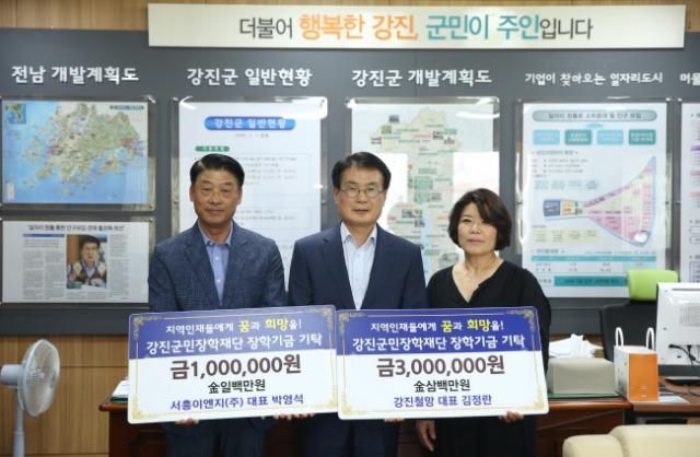 Áö³ 10ÀÏ °Áø±º¹ÎÀåÇÐÀç´Ü¿¡ °ÁøÃ¶¸Á ±èÁ¤¶õ ´ëÇ¥°¡ 300¸¸ ¿ø, ¼ÈïÀÌ¿£Áö(ÁÖ) ¹Ú¿µ¼® ´ëÇ¥°¡ 100¸¸ ¿øÀÇ ÀåÇбÝÀ» ±âŹÇß´Ù.