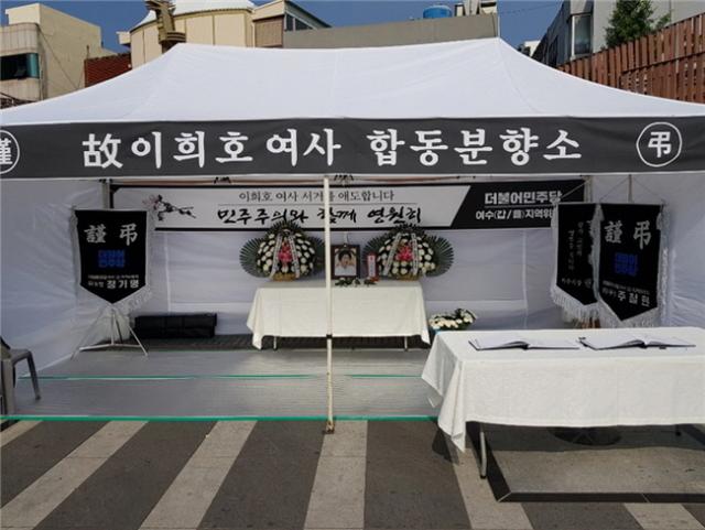 ´õºÒ¾î¹ÎÁÖ´ç ¿©¼ö(°©/À») Áö¿ªÀ§¿øÈ¸¿¡ µû¸£¸é ¡°11ÀÏ ¿ÀÈÄ 2½Ã, ¿©¼ö Áß¾Óµ¿ À̼ø½Å±¤Àå¿¡ ÀÌÈñÈ£ ¿©»çÀÇ ¼ÒõÀ» ¾ÖµµÇϸç ÇÕµ¿ºÐÇâ¼Ò¸¦ ¼³Ä¡Çß´Ù¡±°í ¹àÈ÷¸ç ¡°ºÐÇâ¼Ò ¼³Ä¡ ÈÄ °¢°è°¢Ãþ ½Ã¹ÎµéÀÇ Ã߸ð ¹ß±æÀÌ À̾îÁö°í ÀÖ´Ù¡±°í ¸»Çß´Ù.
