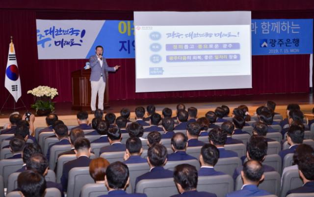 ÇÑÆí, ÀÌ ½ÃÀåÀº ±¤ÁÖÀºÇà ÀÓÁ÷¿øµé¿¡°Ô ¡°Áö¿ª°æÁ¦ÀÇ Ç÷¾×¼øÈ¯À» Ã¥ÀÓÁö°í ÀÖ´Â ÁÖ¿ªÀ¸·Î¼ Áö¿ª°æÁ¦ Ȱ¼ºÈ¿¡ Àû±ØÀûÀ¸·Î ±â¿©ÇØ ÁÖ±æ ºÎŹµå¸°´Ù¡±¸é¼ ¡°±¤ÁÖÀºÇàÀÌ ºñ¾àÀûÀ¸·Î ´õ¿í ¹ßÀüÇÏ±æ ±â´ëÇÑ´Ù¡±´Â ¸»·Î ³¡À» ¸Î¾ú´Ù.