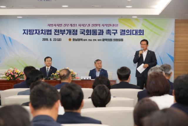 ÇÑÆí, ÀÌ¿ëÀç ÀÇÀåµµ¡°¿À´Ã ÀÌ ÀÚ¸®´Â ¹®ÀçÀÎ Á¤ºÎÀÇ ÀÚÄ¡ºÐ±Ç ±¹Á¤Ã¶Çаú Áö¹æºÐ±Ç °È¶ó´Â ½Ã´ëÀû È帧¿¡ ¸ÂÃç È£³²±Ç Áö¿ªÁÖ¹ÎÀÇ ¿°¿ø°ú ÀÇÁö¸¦ °áÁýÇÏ´Â ¿ª»çÀÇ ÇöÀåÀ¸·Î ±¹È¸°¡ ÇÏ·ç »¡¸® ÀÇ»çÀÏÁ¤¿¡ Àü³äÇØ Áö¹æÀÚÄ¡¹ý °³Á¤À¸·Î ¿ì¸® Áö¹æÀÇ ²ÞÀ» ½ÇÇöÇØ Áֱ⠹ٶõ´Ù¡±°í ¹àÇû´Ù.