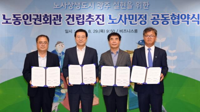±¤ÁÖ±¤¿ª½Ã´Â 29ÀÏ ½Ãû ºñÁî´Ï½º·ë¿¡¼ ³ëµ¿ÀαÇȸ°ü °Ç¸³ÃßÁøÀ» À§ÇÑ ³ë.»ç.¹Î.Á¤ °øµ¿Çù¾à½Ä¡¯À» °³ÃÖÇß´Ù. Çù¾à½Ä¿¡´Â Áö³ 20ÀÏ¿¡ À§ÃËµÈ ¡®Á¦5±â ±¤ÁÖ±¤¿ª½Ã ³ë»ç¹ÎÁ¤ÇùÀÇȸ¡¯ À§¿ø Áß¿¡¼ °¢ ºÐ¾ß¸¦ ´ëÇ¥ÇÏ´Â À̿뼷 ±¤ÁÖ±¤¿ª½ÃÀå°ú À±Á¾ÇØ Çѱ¹³ëÃÑ ±¤ÁÖÁö¿ªº»ºÎ ÀÇÀå, À±¿µÇö ±¤Áְ濵ÀÚÃÑÇùȸ ºÎȸÀå, ¹ÚÀ縸 ±¤ÁֽùδÜüÇùÀÇȸ »óÀÓ´ëÇ¥°¡ Âü¼®Çß´Ù.