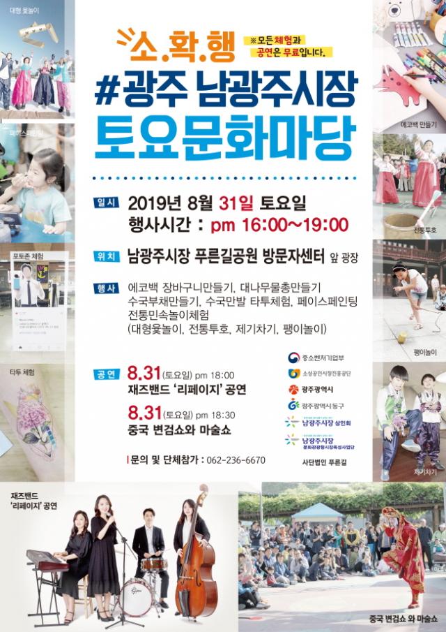 ³²±¤ÁÖ½ÃÀå»óÀÎȸ¿Í ³²±¤ÁÖ½ÃÀå ¹®È°ü±¤Çü ½ÃÀåÀ°¼º»ç¾÷´ÜÀÌ °øµ¿ÁÖ°üÇÏ´Â À̹ø Çà»ç´Â ÁÖ¸»¿¡ ³²±¤ÁÖ½ÃÀåÀ» ã´Â ½Ã¹Îµé¿¡°Ô º¼°Å¸®¸¦ Á¦°øÇØ ¹®ÈüÇèÇü ½ÃÀåÀ¸·Î ÀÚ¸®¸Å±èÇϱâ À§ÇØ ¸¶·ÃµÆ´Ù.