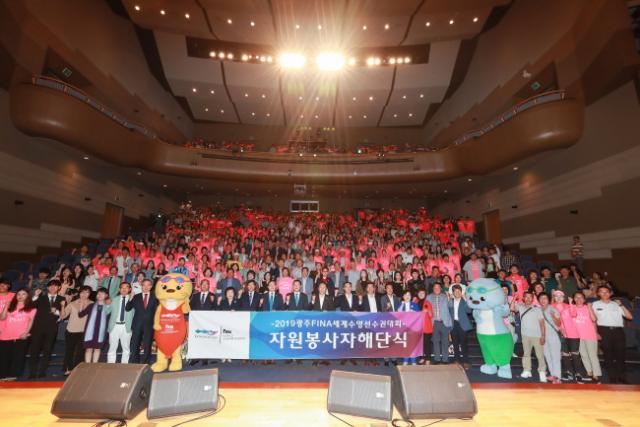 2019±¤ÁÖ¼¼°è¼ö¿µ¼±¼ö±Ç´ëȸ Á¶Á÷À§¿øÈ¸(À§¿øÀå À̿뼷 ±¤ÁÖ±¤¿ª½ÃÀå, ÀÌÇÏ ¡®Á¶Á÷À§¡¯)´Â 3ÀÏ ¿ÀÈÄ, ºû°íÀ»½Ã¹Î¹®È°ü °ø¿¬Àå¿¡¼ À̿뼷 Á¶Á÷À§¿øÀå°ú ½ÃÀÇȸ ±èµ¿Âù ÀÇÀå, Á¶¿µÅà »ç¹«ÃÑÀå µî ´ëȸ °ü°èÀÚ¿Í ÀÚ¿øºÀ»çÀÚ 800¿© ¸íÀÌ ¸ðÀÎ °¡¿îµ¥ ÀÚ¿øºÀ»çÀÚ ÇØ´Ü½ÄÀ» °³ÃÖÇß´Ù.