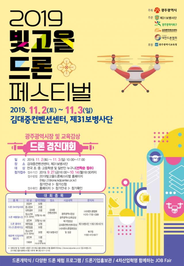 ¿ÃÇØ 4ȸ°¸¦ ¸Â´Â µå·ÐÆä½ºÆ¼¹úÀº µå·Ð¹èƲ¿ùµåÄÅ, µå·Ð¼ÒÇÁÆ®¿þ¾î(SW)ÄÚµù, ¹Ì´Ïµå·Ð·¹À̽Ì, ±¤ÁÖ°ü±¤ µå·Ð ÃÔ¿µ¿µ»ó °ø¸ðÀü µî 6°³ Á¾¸ñÀ¸·Î ¿î¿µµÈ´Ù. À̹ø ´ëȸ¿¡´Â Á¦31º¸º´»ç´Ü, ºÏ±¸Ã», ±¤ÁֽùΠµî 5000¿© ¸íÀÇ Àü±¹ µå·Ð ¸¶´Ï¾Æ°¡ ´ë°Å Âü¿©ÇØ ¿¶í °æÀïÀ» ¹úÀÏ ¿¹Á¤ÀÌ´Ù.