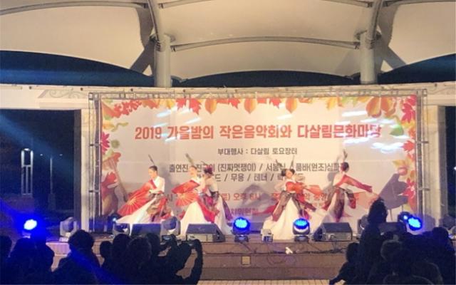 ƯÈ÷, ³²¾Ç°ø¿ø ÁÖ¹«´ë¿¡¼´Â 6½ÃºÎÅÍ ¡¸2019 °¡À»¹ã ÀÛÀº À½¾Çȸ¡¹°¡ ¿·Á ¹êµåµ¿¾Æ¸®, ǰ¹Ù½ÅÆÄ±Ø, Å×³Ê °¡¼ö, ÆÅ½Ã¹êµå °ø¿¬°ú ÇÔ²² ºÐÀ§±â ÀÖ´Â À½¾Ç°ú °ø¿¬ÀÌ À̾îÁö´Â °¡¿îµ¥ °¡¼ö Áø±¹ÀÌ Ãâ¿¬ÇØ Áֹΰú ÇÔ²²ÇÏ´Â Èï°Ü¿î ÇÑÀÚ¸®°¡ ÆîÃÄÁ³´Ù.