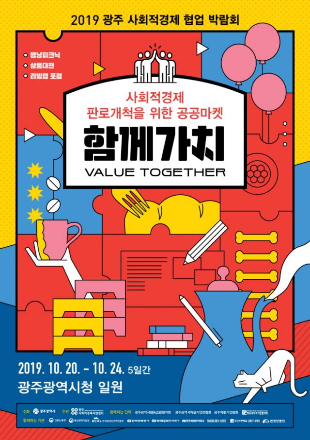 Çù¾÷»ç¾÷ ºÐ¾ß¿¡¼´Â ¹Ý·Áµ¿¹°ºÐ°úÀÇ ¡®Á¦2ȸ ¸Û³ÉÇÇÅ©´Ð¡¯°ú ±³À°¡¤Ã¼ÇèºÐ°úÀÇ ¡®»çȸÀû°æÁ¦¿Í ÇÔ²²ÇÏ´Â Áø·Î±³À°ÃàÁ¦¡¯, Ä¿ÇÇ¡¤À½·á, Á¦°ú¡¤Á¦»§ºÐ°úÀÇ ½ÅÁ¦Ç° ½Ã½Äȸ°¡ ¿¸°´Ù. »óǰȫº¸ ºÐ¾ß¿¡¼´Â Çù¾÷»ç¾÷ 100¿© °³ÀÇ »çȸÀû°æÁ¦ Á¦Ç°°ú ¼ºñ½º µî °á°ú¹°À» ¼Ò°³Çϰí Àü½ÃÇÏ´Â ¡®2019 ±¤ÁÖ »çȸÀû°æÁ¦ »óǰ´ëÀü¡¯µµ °³ÃÖÇÑ´Ù.