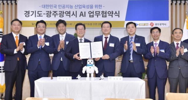 ±¤ÁÖ±¤¿ª½Ã¿Í °æ±âµµ´Â 23ÀÏ ¿ÀÀü °æ±âµµÃ» 2Ãþ »óȲ½Ç¿¡¼ ¼º°øÀûÀÎ ´ëÇѹα¹ ÀΰøÁö´É »ê¾÷À°¼ºÀ» À§ÇÑ ¾÷¹«Çù¾àÀ» ü°áÇß´Ù. À̳¯ Çù¾à½Ä¿¡´Â À̿뼷 ±¤ÁÖ½ÃÀå°ú ÀÌÀç¸í °æ±âµµÁö»ç, ÀÌâÇÑ ÀΰøÁö´É Á߽ɵµ½Ã ±¤ÁÖ¸¸µé±â ÃßÁøÀ§¿øÈ¸ ºÎÀ§¿øÀå, ±è±âÁØ °æ±â°æÁ¦°úÇÐÁøÈï¿øÀå µî ±¤ÁÖ½Ã¿Í °æ±âµµ ÀΰøÁö´É °ü°èÀÚ°¡ Âü¼®Çß´Ù.