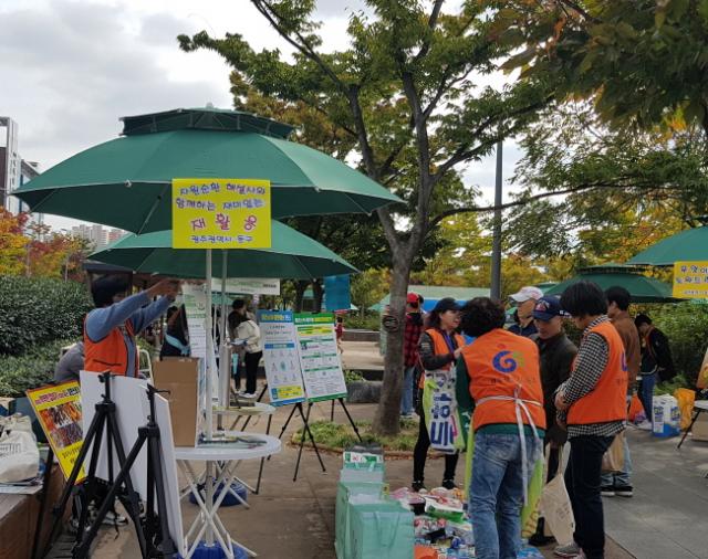 À̹ۿ¡ Æó°ÇÀüÁö¿Í ¿ìÀ¯ÆÑÀ» »õ °ÇÀüÁö¡¤ÈÀåÁö·Î ±³È¯ÇÏ´Â ÀçȰ¿ë È«º¸ºÎ½º ¿î¿µ, ±¤ÁÖ¿©´ë ÇǺΰúÇаú°¡ Âü¿©ÇÏ´Â ÆäÀ̽ºÆäÀÎÆÃ¡¤³×ÀÏ¾ÆÆ® µî üÇ踶´çµµ ÁֹεéÀÇ È£ÀÀÀ» ¾ò¾ú´Ù. ÀÚ¿ø¼øÈ¯Çؼ³»çµéÀº ÀçȰ¿ë ºÐ¸®¹èÃâ ¹æ¹ý µîÀ» ¾Ë¸®´Â ÆÛÆ÷¸Õ½º¸¦ ¼±º¸À̰í, ¾î¸°ÀÌ È¯°æ±³½ÇÀ» ¿î¿µÇØ ´Ù¾çÇÑ ÀçȰ¿ë ¹æ¹ý°ú ȯ°æº¸È£ÀÇ Á߿伺À» ¾Ë·È´Ù.