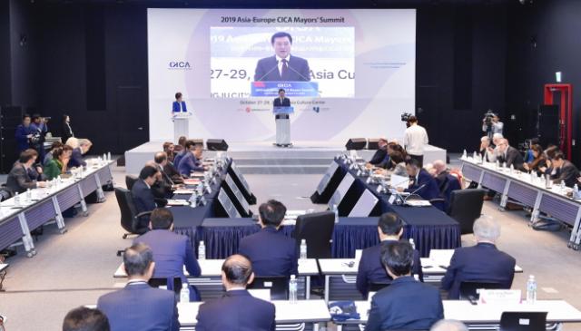 ÇÑÆí¡®2019 ¾Æ½Ã¾Æ-À¯·´ âÀÇÇõ½Åµµ½Ã¿¬´ë ½ÃÀåȸÀÇ´Â 29ÀϱîÁö ¾Æ½Ã¾Æ¹®ÈÀü´ç¿¡¼ ¿¸®¸ç, ¾Æ½Ã¾Æ¿Í À¯·´ µî 14°³±¹ ½ÃÀåµéÀÌ ÇÑ ÀÚ¸®¿¡ ¸ð¿© âÀÇ»ê¾÷ ºÐ¾ßÀÇ µ¿¹Ý¼ºÀåÀ» ¸ð»öÇÑ´Ù. À̳¯ ±¤ÁÖ½Ã¿Í ¿µ±¹ ºê¸®½ºÅç µî 4°³ µµ½ÃÀÇ ¹®ÈâÀÇ Çõ½Åµµ½Ã ¼º°ø»ç·Ê¹ßÇ¥°¡ ÁøÇàµÆ´Ù.