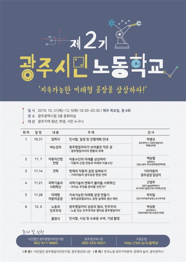 ½Ã¹Î ´©±¸³ª Âü¿© °¡´ÉÇÏ¸ç ¼ö°À» ¿øÇÏ´Â ½Ã¹ÎÀº ±¤Áֽà ³ëµ¿Çù·Â°ü½Ç(062-613-1382)À̳ª (»ç)±¤ÁÖÇüÀÏÀÚ¸®¿¬±¸¿ø(062-611-8860), Çѱ¹³ëÃÑ ±¤ÁÖÁö¿ªº»ºÎ(062-383-3605)·Î ¹®ÀÇÇÏ¸é µÈ´Ù. 4ȸ ÀÌ»ó ¼ö°ÀÚ¿¡°Ô´Â ½Ã¹Î³ëµ¿Çб³Àå(À±Á¾ÇØ Çѱ¹³ëÃÑ Áö¿ªº»ºÎ ÀÇÀå)À¸·ÎºÎÅÍ Á¹¾÷Áõ¼°¡ ¼ö¿©µÈ´Ù.