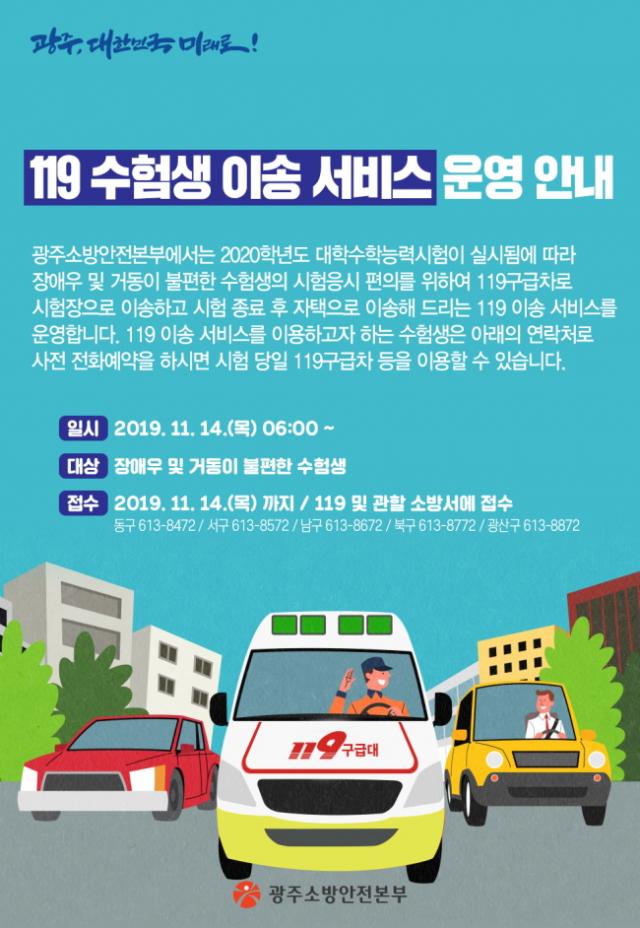 ¼ºñ½º¸¦ ÀÌ¿ëÇÏ·Á´Â ¼öÇè»ýÀ̳ª Çкθð´Â ¼ö´É½ÃÇè ´çÀÏÀÎ 14ÀϱîÁö 119 ¶Ç´Â °üÇÒ ¼Ò¹æ¼¿¡ ÀüÈ·Î ¿¹¾àÇÏ¸é µÈ´Ù. ÀÌ¿Í ÇÔ²² ½Ã ¼Ò¹æ¾ÈÀüº»ºÎ´Â À̹ø ¼ö´É¿¡¼ óÀ½À¸·Î ½ÃÇèÀå ³» ÀÀ±ÞȯÀÚ ¹× ÈÀç µî Àç³»óȲ¿¡ ´ëºñÇÒ ¼ö ÀÖµµ·Ï °£È£»ç ¶Ç´Â 1±Þ ÀÀ±Þ±¸Á¶»ç·Î ±¸¼ºµÈ ÀÀ±ÞÀÇ·á ÀηÂÀ» ¸ðµç ½ÃÇèÀå¿¡ ¹èÄ¡ÇÒ °èȹÀÌ´Ù.