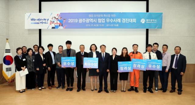 ±¤Áֽô Áö³ 4ÀÏ ½Ãû ¹«µîȦ¿¡¼ Çù¾÷ÇàÁ¤ÀÇ ¼º°ú¸¦ °øÀ¯․È®»êÇϱâ À§ÇÑ ¡®2019 ±¤ÁÖ±¤¿ª½Ã Çù¾÷ ¿ì¼ö»ç·Ê °æÁø´ëȸ¡¯¸¦ ¿¾ú´Ù. À̹ø ¹ßǥȸ´Â ¿ÃÇØ ½Ã°¡ ÃßÁøÇÑ Çù¾÷¼º°ú¸¦ °á»êÇÏ´Â ÀÚ¸®·Î, Áö³ 3¿ù ¼±Á¤µÈ Çù¾÷°úÁ¦ 78°³ Áß »çÀü½É»ç¸¦ Åë°úÇÑ 10°³ ÆÀÀÌ Âü°¡ÇØ °æÇÕÀ» ¹ú¿´´Ù.