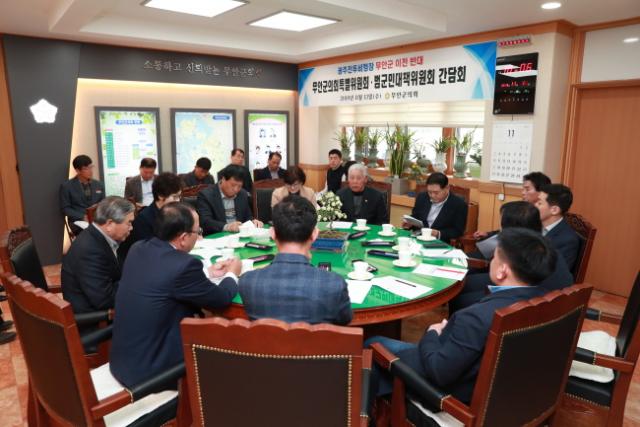 ÁÖ¿ä »çÇ×À¸·Î´Â ¹ü´ëÀ§ÀÇ ±¤ÁÖ½Ãû Ç×Àǹ湮°Ç°ú ±¹¹æºÎ ÀÌÀü¹Ý´ë ¹ü±º¹Î ¼¸íºÎ Á¦Ãâ°Ç, ±âŸ ´ëÀÀ¹æ¾È µîÀÌ ³íÀǵǾú´Ù. ƯÈ÷, ¹ü´ëÀ§´Â Áö³ 5ÀÏ ÀÚüȸÀÇ ½Ã ±¤ÁÖ½ÃûÀ» Ç×Àǹ湮ÇÏ¿© ¹«¾È±ºÀÇ ÀÌÀü ¹Ý´ë ÀǰßÀ» Àü´ÞÇÒ °ÍÀ» ÇùÀÇÇÏ°í ±× ³»¿ëÀ» ¹«¾È±ºÀÇȸƯº°À§¿øÈ¸¿Í ±¸Ã¼ÀûÀ¸·Î ³íÀÇÇÏ¿´´Ù. ÀÌ ÀÚ¸®¿¡¼ ¸ðÁ¾±¹ »óÀÓ°øµ¿À§¿øÀåÀº ¡°È£³²ÀÇ À¯ÀÏÇÑ ¹«¾È±¹Á¦°øÇ׿¡ ±¤ÁÖ¹ÎÇ× ÅëÇÕÀ» ºô¹Ì·Î ±º»ç°øÇ×À» ¿Å±â·Á ÇÏ´Â °ÍÀº ±¤ÁÖÀü³²ÀÇ ½Ã°è¸¦ °Å²Ù·Î µÇµ¹¸®´Â °ÍÀ̶ó¸ç, ¿ì¸® ¹ü´ëÀ§´Â ±¤ÁÖ½ÃûÀ» Ç×ÀÇÂ÷ ¹æ¹®ÇÏ¿© ÇöÀç ±¤ÁÖ½ÃÀÇ ÀϹæÀûÀÎ ÀÌÀü»ç¾÷ ÃßÁøÇàÅ¿¡ ´ëÇØ °·ÂÈ÷ ºñÆÇÇÏ°í ¹«¾È±ºÀÇ ÀÔÀåÀ» ºÐ¸íÈ÷ Àü´ÞÇÒ °Í¡±À̶ó°í ¹àÇû´Ù.