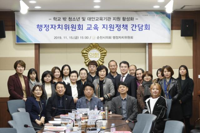 À̳¯ °£´ãȸ´Â ³ª¾È¼ö À§¿øÀåÀ» ºñ·ÔÇÑ ¼øÃµ½ÃÀÇȸ ÀÇ¿ø, ¼øÃµ½Ã, ±³À°Ã», °ü·Ã´Üü, Çкθð, Çлý µîÀÌ Âü¼®Çß´Ù. °£´ãȸ´Â À̹ø °£´ãȸ¸¦ ÁÖ¼±ÇÑ ¹ÚÇýÁ¤ ÀÇ¿øÀÇ Çб³ ¹Û û¼Ò³â¿¡ ´ëÇÑ °ü½É°ú Áö¿ø Çʿ伺¿¡ ´ëÇÑ ¹ßÁ¦¸¦ ½ÃÀÛÀ¸·Î ±¤ÁÖ±¤¿ª½Ã Çб³¹Ûû¼Ò³âÁö¿ø¼¾ÅÍ À̹Îö Àü ¼¾ÅÍÀåÀÇ ±¤ÁÖ±¤¿ª½Ã Çб³ ¹Û û¼Ò³â Áö¿øÁ¤Ã¥ ¹× »ç·Ê¿¡ ´ëÇÑ ±âÁ¶°¿¬°ú, ¼øÃµ½Ã Çб³¹Ûû¼Ò³âÁö¿ø¼¾ÅÍ Àӹ̿µ ÆÀ¿øÀÇ ¼øÃµ½Ã Çб³ ¹Û û¼Ò³â ±³À° Áö¿ø»ç¾÷ ÇöȲ ¹ßÇ¥°¡ µÚµû¶ú´Ù.