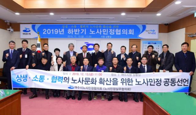 13ÀÏ ¿©¼ö½Ã¿¡ µû¸£¸é À̳¯ ¿ÀÀü ¿©¼ö½Ãû »óȲ½Ç¿¡¼ ¡®2019³â ÇϹݱ⠿©¼ö½Ã ³ë»ç¹ÎÁ¤ÇùÀÇȸ ȸÀÇ¡¯°¡ ¿·È´Ù. ÀÌ ÀÚ¸®¿¡´Â ±Ç¿ÀºÀ ¿©¼ö½ÃÀå°ú ¹Ú¿ëÇÏ ¿©¼ö»ó°øÈ¸ÀÇ¼Ò È¸Àå, ±è¼ºÃá Çѱ¹³ëÃÑ¿©¼öÁö¿ªÁöºÎÀÇÀå°ú ½Å¼º³² ¹ÎÁÖ³ëÃÑ¿©¼ö½ÃÁöºÎÀå µî 40¿© ¸íÀÌ Âü¼®Çß´Ù.