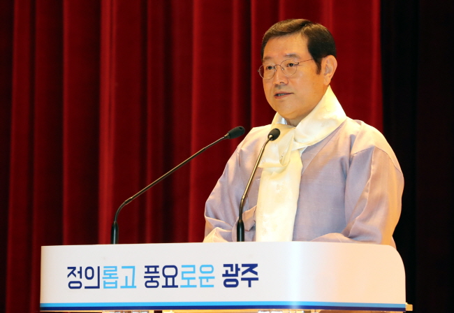 ÀÌ ½ÃÀåÀº ¡°¿©·¯ºÐ°ú Á¦°¡ ¸¸µé¾î¾ß ÇÒ ¡®Á¤ÀÇ·Ó°í dz¿ä·Î¿î ±¤ÁÖ¡¯ÀÇ ¸ð½ÀÀº û³âµéÀÌ ¶°³ª´Â ±¤ÁÖ¿¡¼ µ¹¾Æ¿À´Â ±¤ÁÖ, »ç¶÷°ú µ·°ú ±â¾÷ÀÌ Ã£¾Æ¿À´Â ±¤ÁÖ¸¦ ¸¸µå´Â °Í, ½Ã¹ÎµéÀÌ ¡®³ª´Â ±¤ÁÖ¿¡ »ê´Ù¡¯°í ÀÚ¶û½º·´°Ô ¾ê±âÇÒ ¼ö ÀÖ´Â ´ç´çÇÑ ±¤ÁÖ¸¦ ¸¸µå´Â °ÍÀÌ´Ù¡±¸é¼ ¡°±× ³¯ÀÌ ¿Ã ¶§±îÁö ¡®Çõ½Å, ¼ÒÅë, û·Å¡¯À» ³ªÄ§¹Ý »ï¾Æ ¸ðó·³ ¸ÂÀÌÇÑ ¹ßÀü°ú µµ¾àÀÇ È£±â¸¦ »ì·Á ±¤ÁÖ¸¦ ´ëÇѹα¹ÀÇ ¹Ì·¡·Î ¿ì¶Ò ¼¼¿ìÀÚ¡±°í ¸»Çß´Ù.