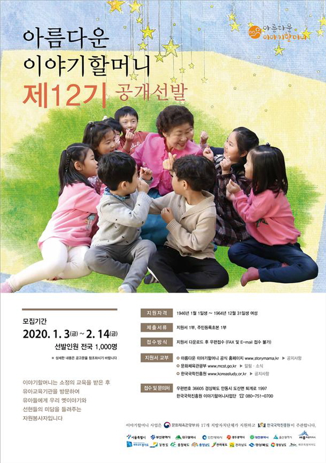 À̾߱âÇÒ¸Ó´Ï ¼±¹ß¿¡ ÇзÂÀ̳ª °æ·Â»çÇ× µîÀº °í·Á»çÇ×ÀÌ ¾Æ´Ï°í 56¼¼~74¼¼ÀÇ ´ëÇѹα¹ ±¹ÀûÀÇ ¿©¼º ¾î¸£½ÅÀ¸·Î¼ ¾ÆÀ̸¦ »ç¶ûÇÏ´Â ¸¶À½À» °¡Áö°í À̾߱⠱¸¿¬¿¡ ÇÊ¿äÇÑ ±âº»Àû ¼Ò¾ç¸¸ ÀÖÀ¸¸é ´©±¸µç Áö¿ø °¡´ÉÇÏ´Ù. À̾߱âÇÒ¸Ó´Ï¿¡ µµÀüÀ» ¿øÇÏ´Â ¾î¸£½ÅÀº À̾߱âÇÒ¸Ó´Ï»ç¾÷´Ü ´©¸®Áý(www.storymama.kr)¿¡¼ ¼±¹ß °ø°í¹®À» È®ÀÎÇϰí, 2020³â 2¿ù 14ÀÏ(±Ý)±îÁö Áö¿ø¼¸¦ ÀÛ¼ºÇØ ¿ìÆíÀ¸·Î Á¢¼öÇÏ¸é µÈ´Ù.
