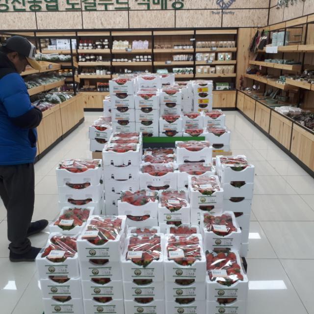 ÇÑÆí, °Áø ·ÎÄÃǪµåÁ÷ÆÇ¸ÅÀåÀº 178§³ ±Ô¸ð·Î °Áø³óÇù ÆÄ¸Ó½º¸¶ÄÏ ³»¿¡ ¼¥Àμ¥ ÇüÅ·Π¼³Ä¡µÆ´Ù. ÇöÀç 284³ó°¡°¡ ÃâÇÏÇØ 420°³ ǰ¸ñÀ» ÆÇ¸ÅÇϰí ÀÖ´Ù. »ý»êÀÚ°¡ ¾ÆÄ§¿¡ °« ¼öÈ®ÇÑ ³ó»ê¹°À» ¿ÀÀü 9½Ã±îÁö ¸ÅÀå¿¡ Áø¿Çϰí Á÷Á¢ °¡°ÝÀ» Ã¥Á¤ÇØ ¼ÒºñÀÚ¿¡°Ô ÆÇ¸ÅÇÏ´Â Á÷°Å·¡ ¹æ½ÄÀ» µµÀÔÇØ ¿î¿µÇÑ´Ù. ¿î¿µ½Ã°£Àº ¸ÅÀÏ ¿ÀÀü 9½ÃºÎÅÍ ¿ÀÈÄ 10½Ã±îÁö´Ù.